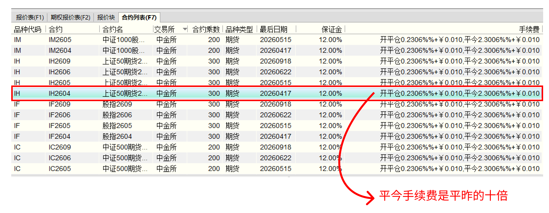 如果一个品种平今和平昨的手续费差不多,直接平仓通常最省事。问题在于,市场里确实有一部分品种不是这样。但是如上图所示,股指品种的平今手续费是平昨的十倍!而且中金所还有一项特殊规则,如果你今日开仓该合约,无论你原本的持仓是否是昨仓,一律按照平今收取高额手续费,这种情况下,直接平仓很明显是极其浪费成本的。