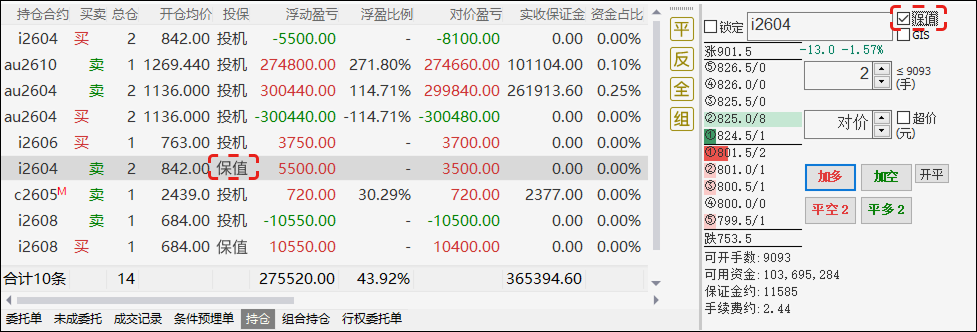 专业用户做套保,往往更在意稳定的合约管理、顺畅的盯盘与下单体验、以及交易执行过程的可追踪。 在快期2快期3下单板勾选保值即可下保值单,操作简洁、信息清晰,套保相关动作更容易落地成日常流程。