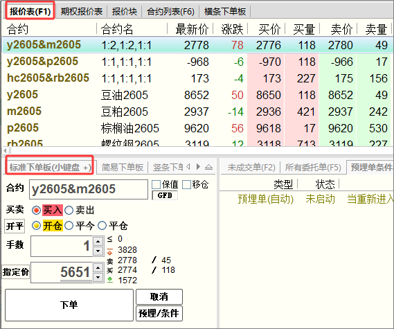 如果仅需盘口数据与直接组合下单,可以选择快期2: