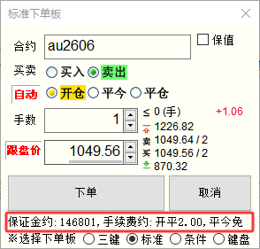 第二步,一个实用的习惯:下单前先预估单手保证金,把费率转换为实际的金额,做到“心中更有数”。 快期2快期3根据费率和最新价计算了费率的预估值,可在下单板底部查看: