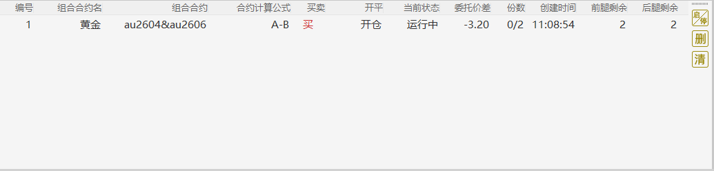 组合建好以后,会出现在自组合报价表里。你可以直接看到组合的实时价差、买卖量这些信息,也可以对组合做修改或删除。