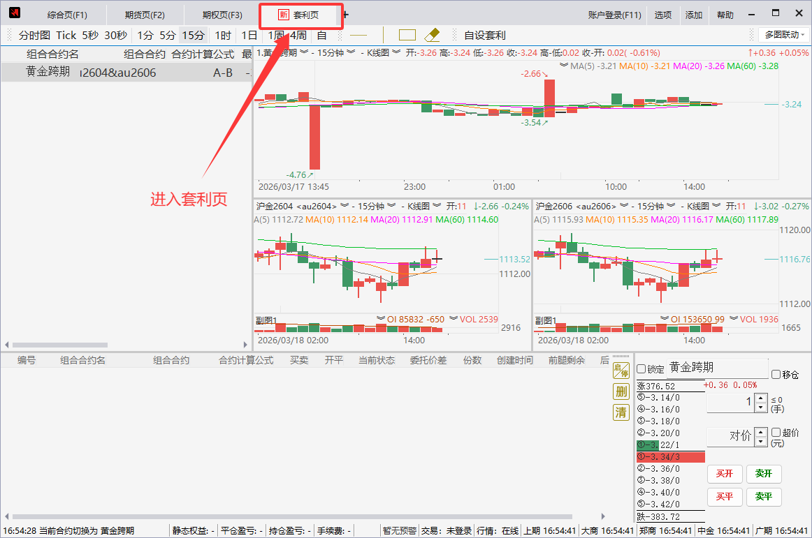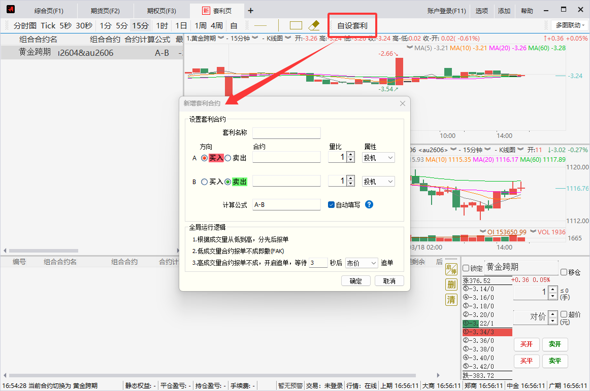 这里有个边界最好提前知道:它支持期权合约,但不支持主连、指数或标准套利合约。也就是说,做自定义套利时,最好直接选具体合约,不要拿主连去拼。