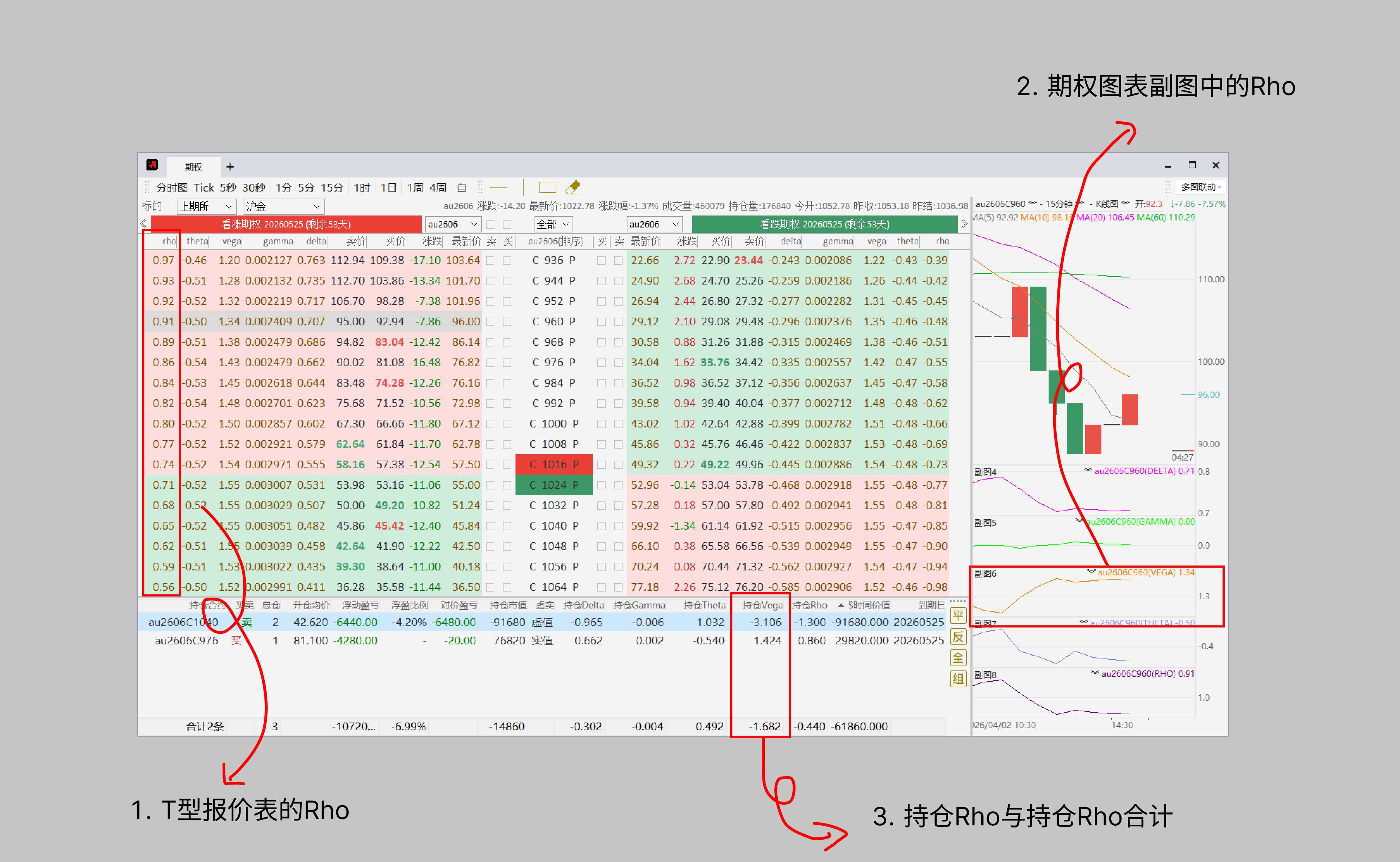 7. 快期3里除了 Rho,还能看哪些期权辅助数据?