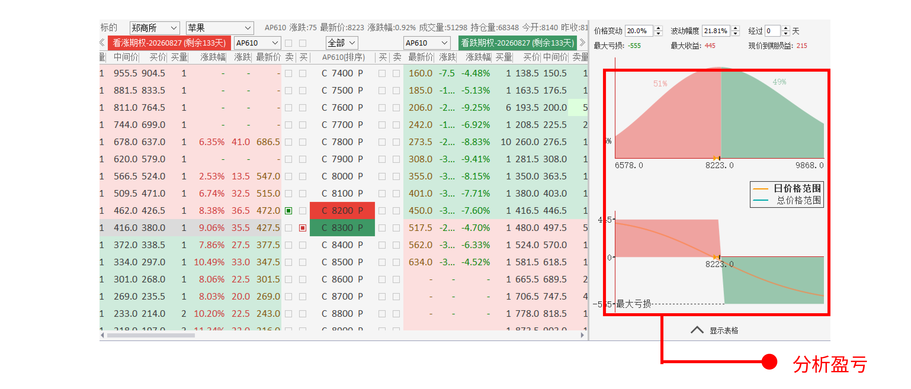 先看 T 型报价表和盈亏分析图。前者帮你选腿,后者帮你把风险边界看成图形。