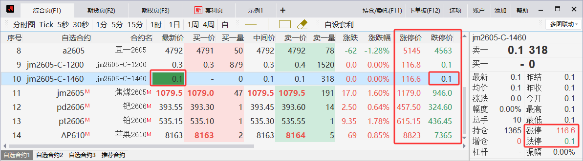 报价表与盘口可查看涨跌停数据,并在涨跌停时高亮显示最新价以做提示(涨停时底色为红色,跌停时底色为绿色),有助于快速确认当前价格距离制度边界还有多远。